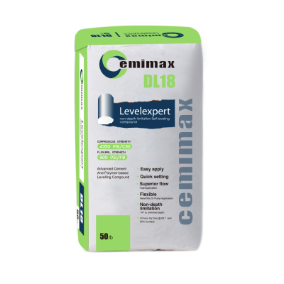 Cemimax DL18 is a polymer modified Cementious self leveling used to level and smooth concrete as well as other interior substrates. Suitable at depths from 1/8” to unlimited. DL-18 produces a very low emission, rapid setting, high-flow, level, flat, cost-effective, in areas with normal wear demands. For internal use only.