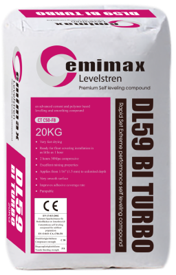 DL59 BI TURBO is a highly polymer-modified, fast-setting self-leveling compound that will accept floor covering in appro-ximately 60 minutes. It is sufficiently dry for installation of most floor coverings as soon it is set to walk on, allowing for complete renovations in a single day.