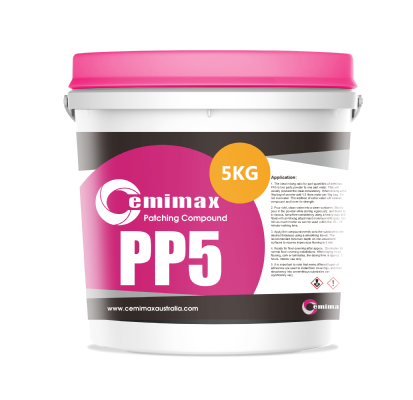 PP5 is an advanced cement and polymer mix that is highly versatile, rapid drying patching compound. Its fine aggregates allow it to be installed from a feather edge up to a high ll depth in one application. Superior bonding allows it to be applied over existing concrete, well bonded ooring, properly prepared non-water soluble adhesive, well bonded gypsum, all without having to use primer in most applications.